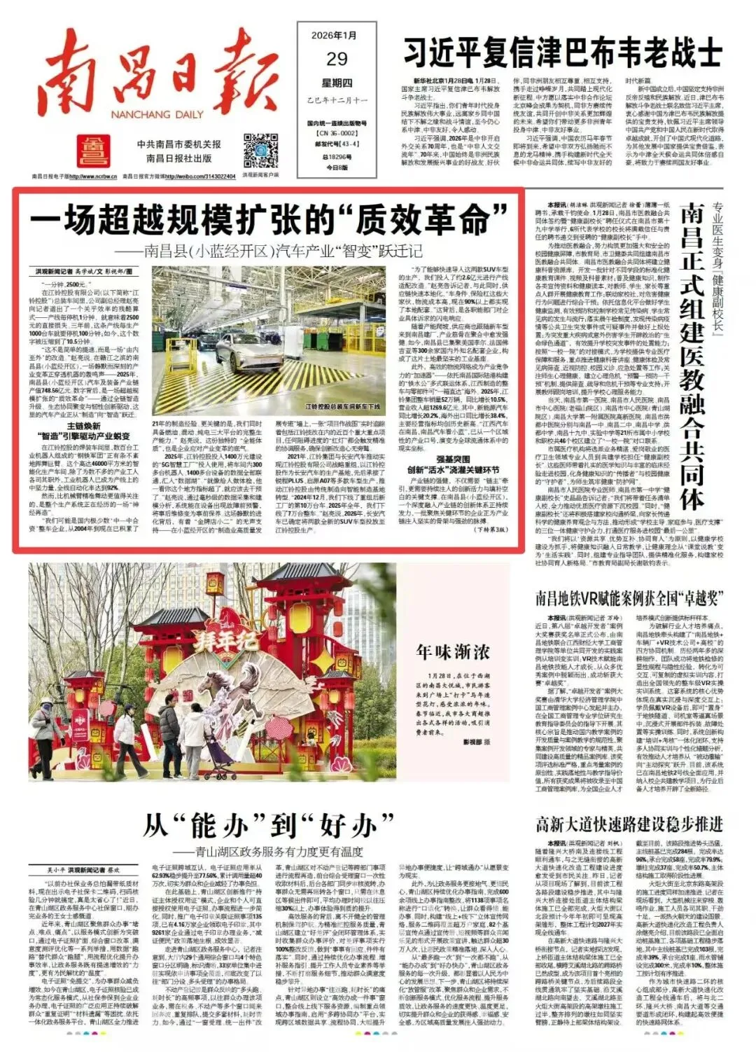 展望未来,路径已然清晰。2026年,南昌县(小蓝经开区)将聚焦汽车首位产业,引导车企向“电动化、智能化、网联化、共享化”转型,向海外市场进军。未来,一个更坚韧、更智能、更高效的汽车产业生态,已在赣江之滨巍然成形。