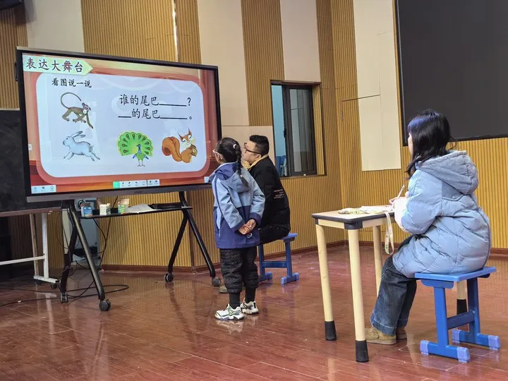 一年级语文测评,孩子们化身小小探险家,依次闯过“拼音游乐园”“词语冒险岛”“积累收获园”“阅读奇幻境”和“表达大舞台”五大关卡。在拼音乐园里拼读词语,在词语岛上认读生字,在积累园背诵经典,在阅读天地里大声朗读儿歌,还在表达舞台上展开想象、模仿课文创编句子。孩子们在游戏中展现了语文能力,也收获了满满的成就感与快乐。