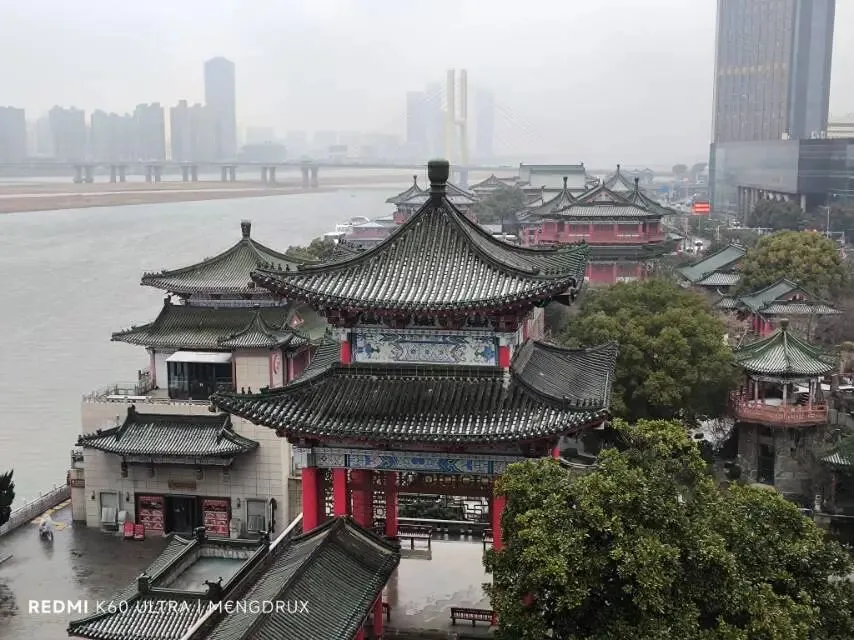 来南昌的这两天正巧冷空气南袭,我捕捉到了南昌今年的初雪。是时,我登上滕王阁,细雪和雾气的阻碍,让『潦水尽而寒潭清,烟光凝而暮山紫』、『鹤汀凫渚,穷岛屿之萦回;桂殿兰宫,即冈峦之体势』、『云销雨霁,彩彻区明』等等景象不再体现,换来的是我从未见过的,白幕挂满『层峦耸翠;飞阁流丹』,银霰铺遍『闾阎扑地;舸舰迷津』,一定是一番平日里也不多见的气色,初雪给滕王阁笼罩上了一层朦胧的氛围。至于序里面的风景,就让它停留在王勃带给我们文字的幻想中。