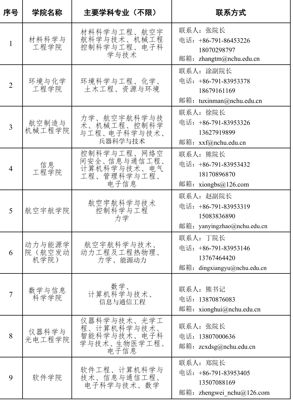 (1)相关学院联系方式