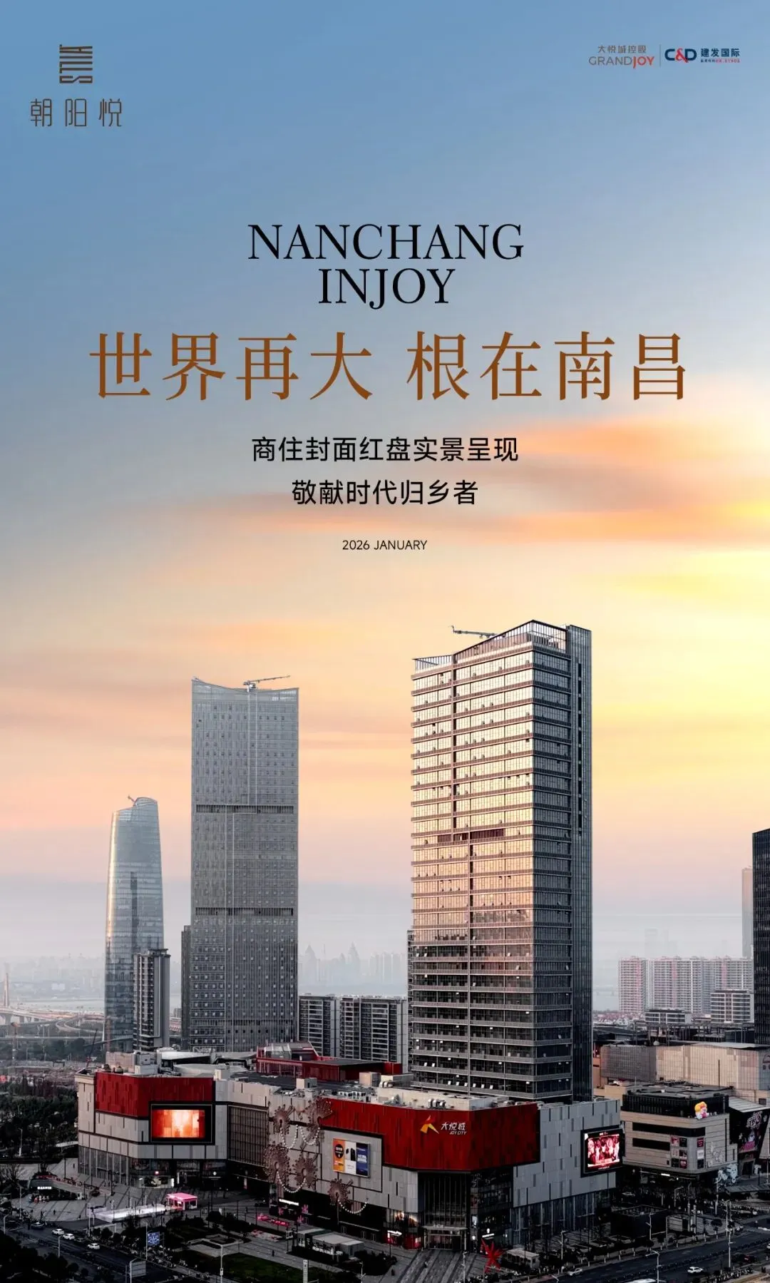 世界再大,根在南昌。当您怀揣着骄傲与乡情,回到这片充满机遇的故里,南昌日益蓬勃兴盛的城市盛境以及大悦城·朝阳悦为您呈现的,不仅是一个资产配置的绝佳机遇,更是一座与城市共进的时代封面。
