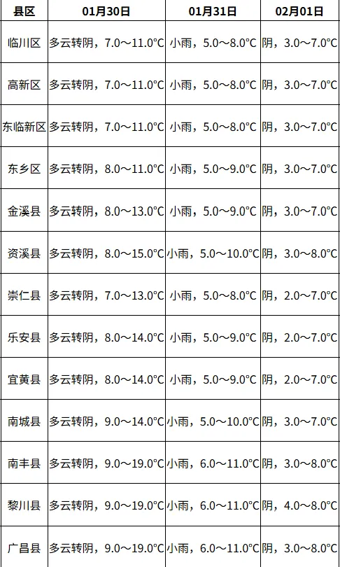 抚州市气象台16时发布天气预报:今天晚上多云间晴,明天白天多云转阴,偏北风2级,最低气温7℃~9
