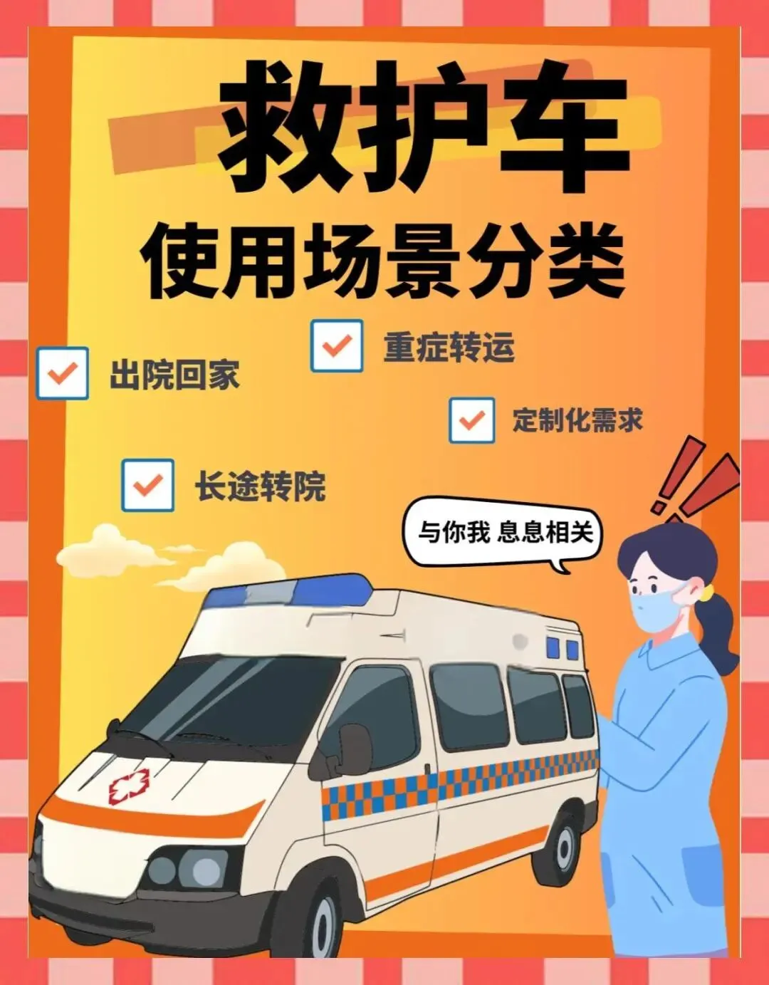 如果您家里有人出院、转院,自己搬不动、普通车坐不了,选我们就能安全把人从病床接到家里床上,从一个医院送到另一个医院,哪怕是是外省。