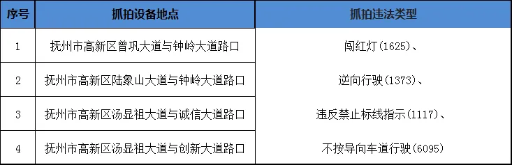 日前,抚州交警将我市城区道路上新增的4处电子警察设备设置点向社会进行了公示。这些电子警察设备将于2月4日正式启用。
