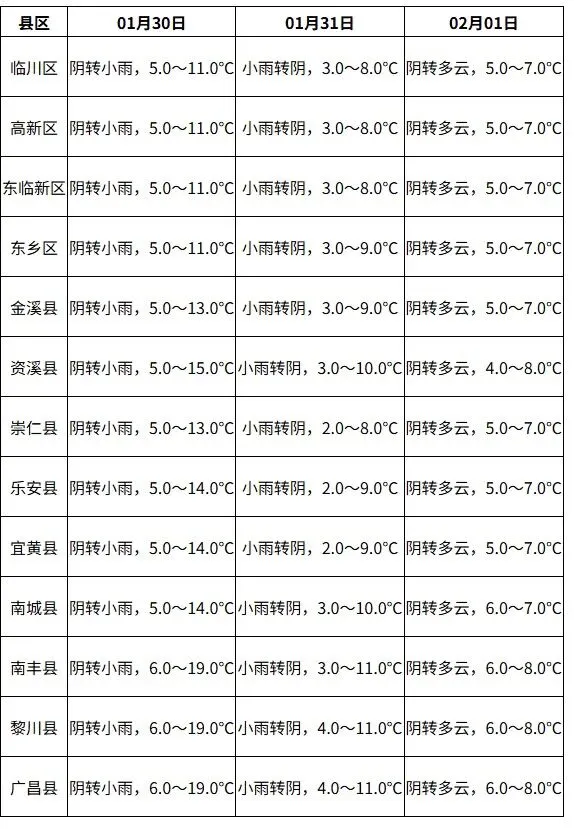 各县区具体预报