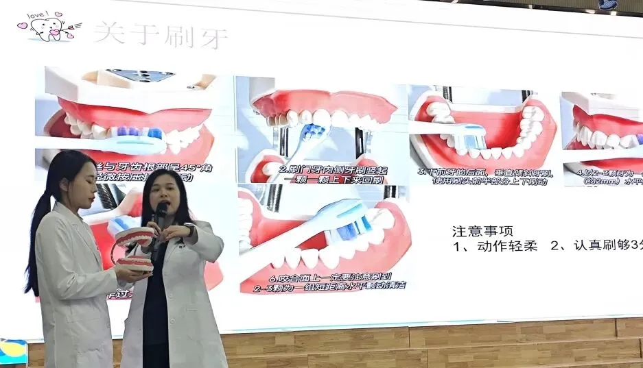 一年级的牙医妈妈手持牙齿模型,将口腔的奥秘生动而具体地展现在孩子们面前。小朋友们身坐直背挺正,清澈的眼睛如聚光灯般落在模型上。