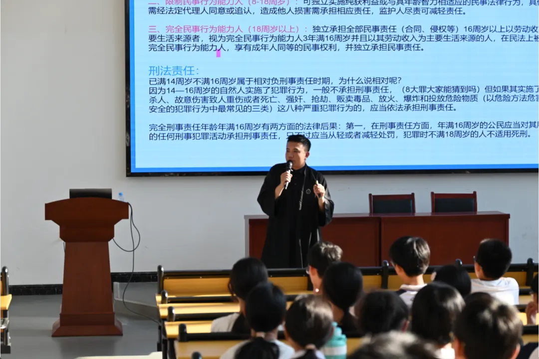 七年级的普法课堂,气氛庄重而深刻,法治精神沁入心田。