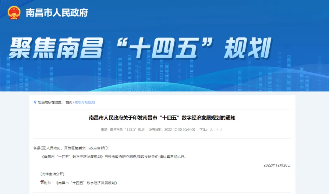 另外,《规划》还明确,要健全完善发展环境,深入推进构建新发展格局,健全完善数字经济市场服务和要素保障体系,全面激发市场主体活力与创造力,构建协调统一的网络安全保障体系,加快培育开放协作、包容普惠、 安全有序的良性发展生态。构建开放发展新格局,积极承接粤港澳大湾区、长三角、珠三角等地优质资源,抓好与广东七市战略合作协议落地深根,以数字化带动技术、资本、人才、数据等生产要素汇聚和高效配置。优化数字营商环境,大力引进国内外知名数字经济龙头企业在南昌设立区域总部、研发总部、业务总部等,对重点企业量身定制专项招商政策,推动产业上下游和关联企业生态集聚。