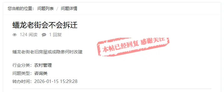 近日,有网友在“问政赣州”平台上咨询:蟠龙老街会不会拆迁。一起来看看。