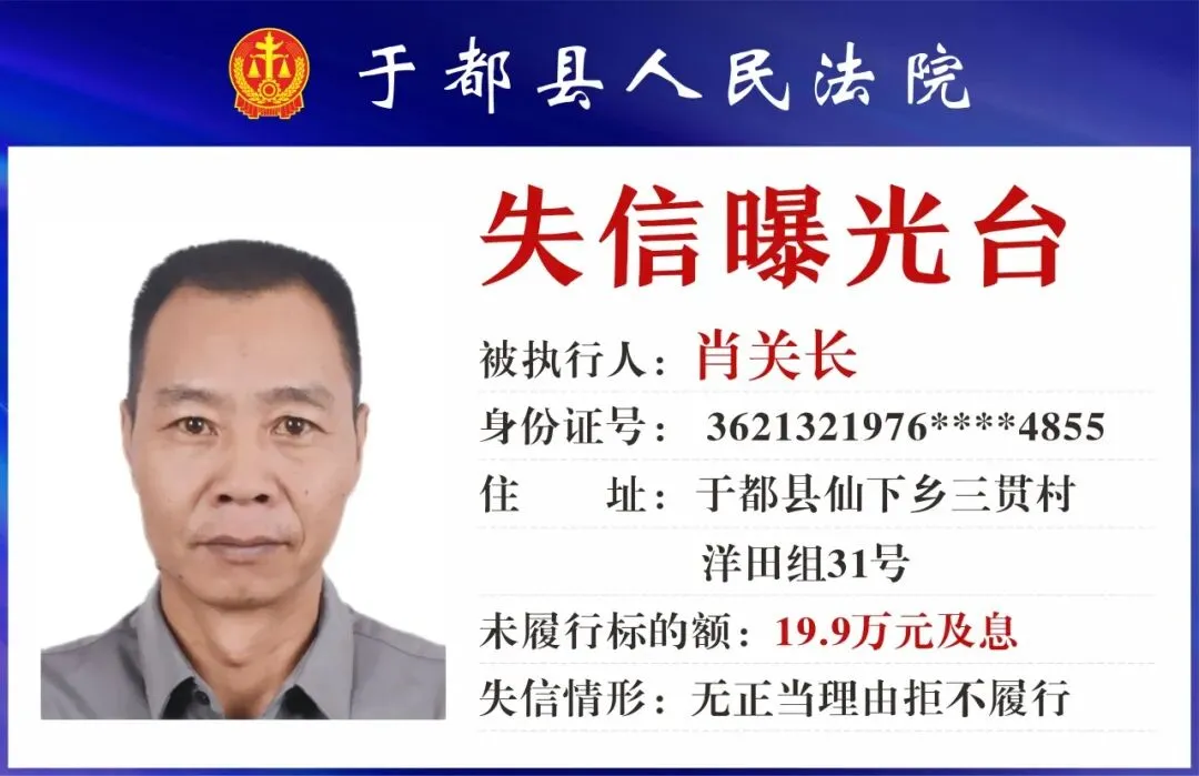 名单信息截止日期为2025年12月28日15:00,清偿情况将在置顶留言区公布。更多失信被执行人名单请登录中国执行信息公开网查询http://zxgk.court.gov.cn/。欢迎广大人民群众向于都县人民法院举报被执行人的财产线索和下落,监督被执行人消费和经营行为。执行电话:0797-6210622。