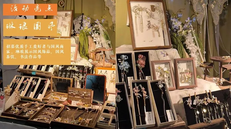 琳琅展示的国风饰品、茶饮、书法