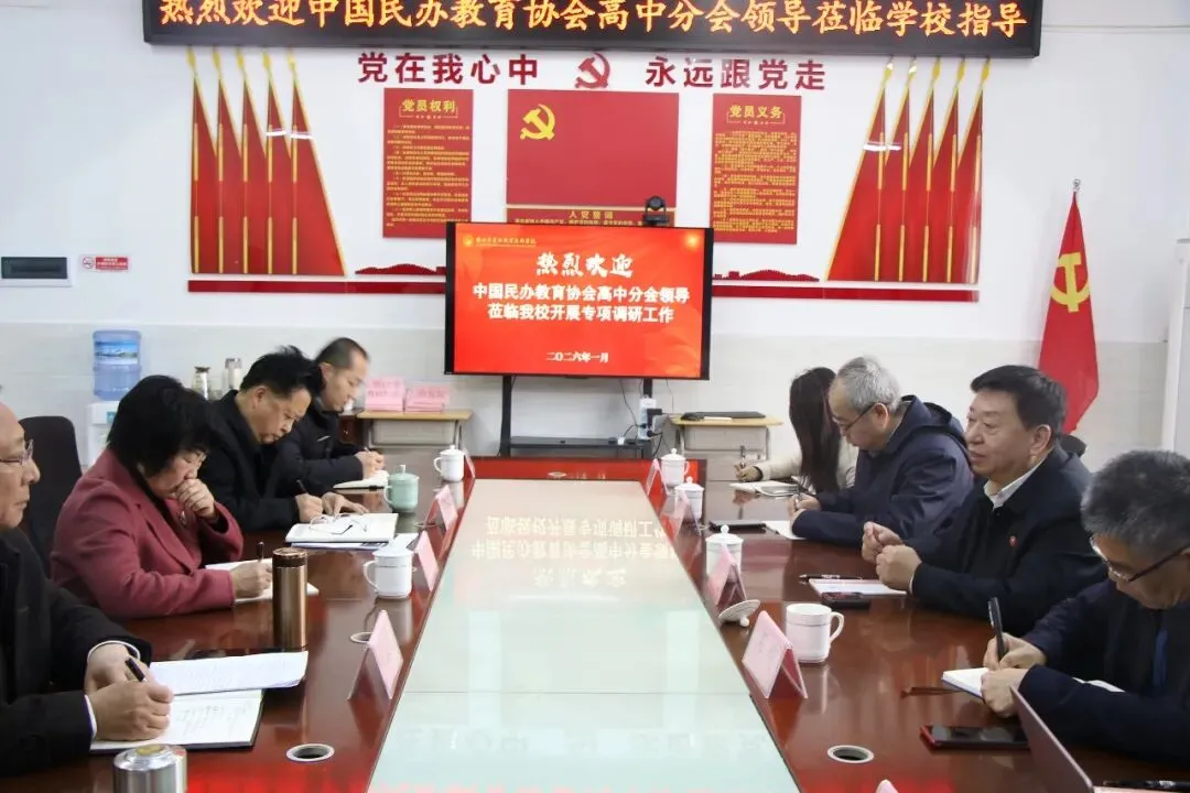 2026年1月27日上午,中国民办教育协会高中分会2026年度调研行第9站走进赣州市前沿职业技术学校。高中分会常务副理事长朱建民率调研团一行,在赣州市民办教育协会会长邓明陪同下,与学校董事长王三英,赣州市民办教育协会常务副会长、赣州市前沿职业技术学校校长罗晓晔及校领导班子围绕普职融通办学、职业教育高质量发展等主题展开深度交流。