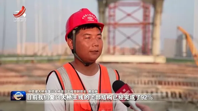 中铁建大桥局复兴大桥项目工程部副部长龚文林告诉记者:“目前,我们复兴大桥主线的上部结构已经完成了92%,我们(将)进一步推进项目的建设,确保在今年年底主线通车。”