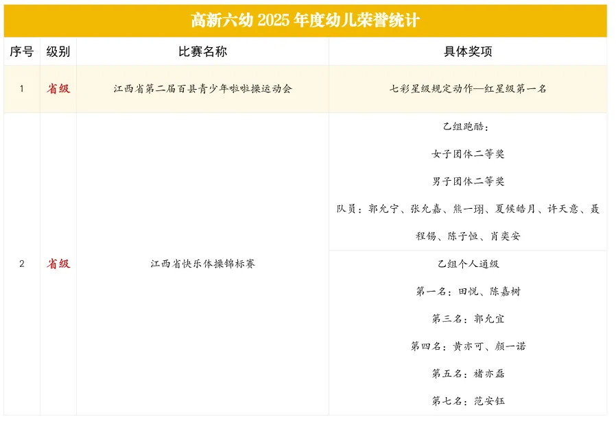 在省级体育赛事的赛场上,六幼的孩子们活力满满、自信昂扬,用整齐有力的动作和不服输的劲头,在团体与个人项目中均斩获佳绩,展现出蓬勃向上的朝气与团结协作的精神,每一份成绩都是他们汗水与努力的最好见证。