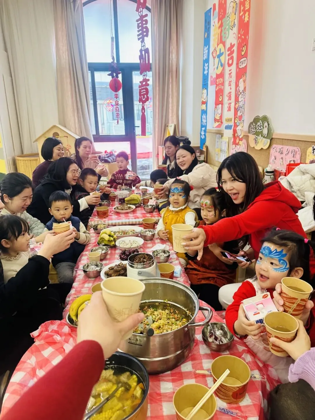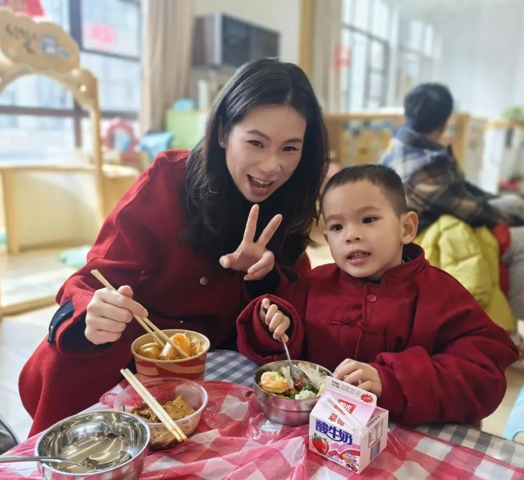家长们也用心准备了自己亲手制作的菜肴,带着家的味道走进班级,空气里慢慢飘起了诱人的香气。长桌旁,大家轻声交谈、笑意满满,一起分享美食,也一起分享这份难得的温暖与团聚时光❤️