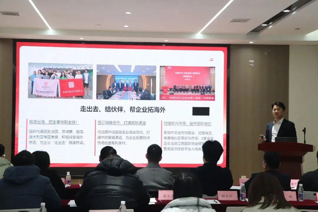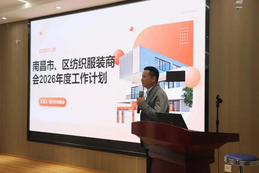 为总结商会2025年度工作成果,凝聚会员力量,明确2026年发展方向,强化会员企业间交流合作,推动“青山湖针纺”区域品牌升级与行业高质量发展,1月29日,南昌市、区纺织服装商会在江西跨境电商产业基地2楼会议室顺利召开2026年度第一次理事会!