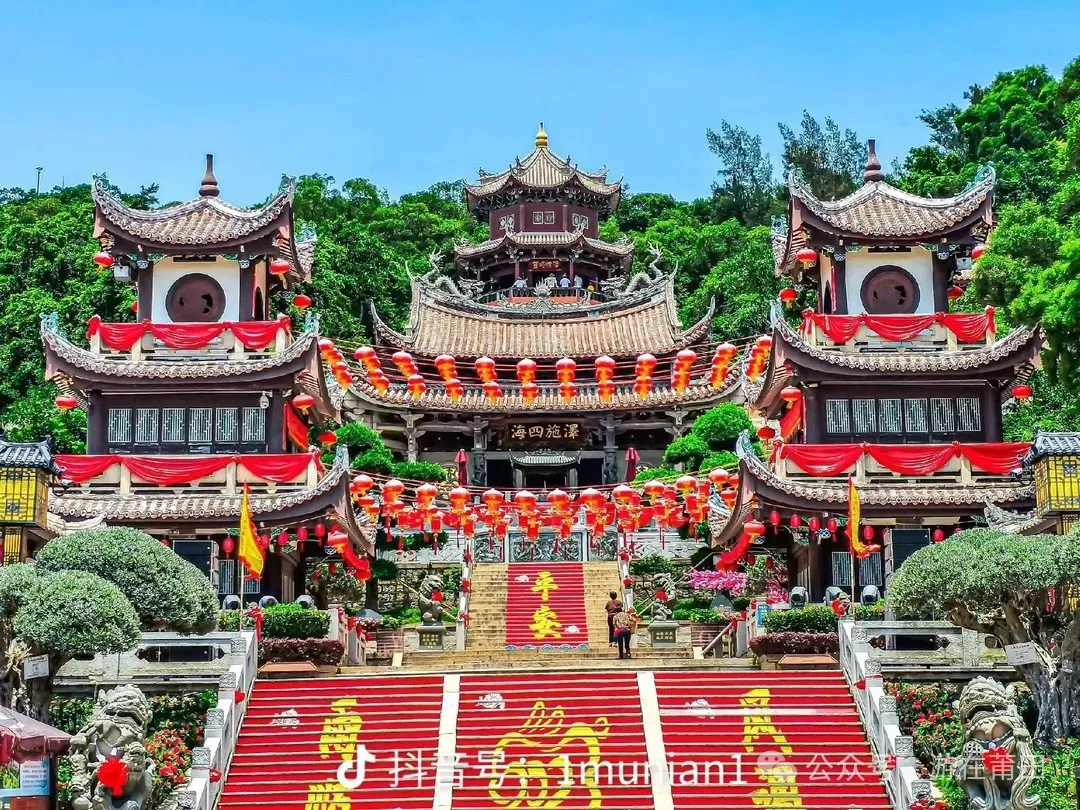 而后进入有着” 海上布达拉宫“之称的【文化公园】。(游览时间60分钟)1997年建造,耗资1.7亿人民币的南轴新殿,站在公园山巅,秀 峰奇石、幽洞静林衬托下的妈祖祖庙巍峨壮观;那巍然屹立的妈祖雕像,面朝大海,雍容慈祥,是一 尊永恒的海神,是和平的象征。妈祖精魂,古今中外无处不在。随后进入文化园参观灵慈殿,天后 宫,顺济殿等宫殿。