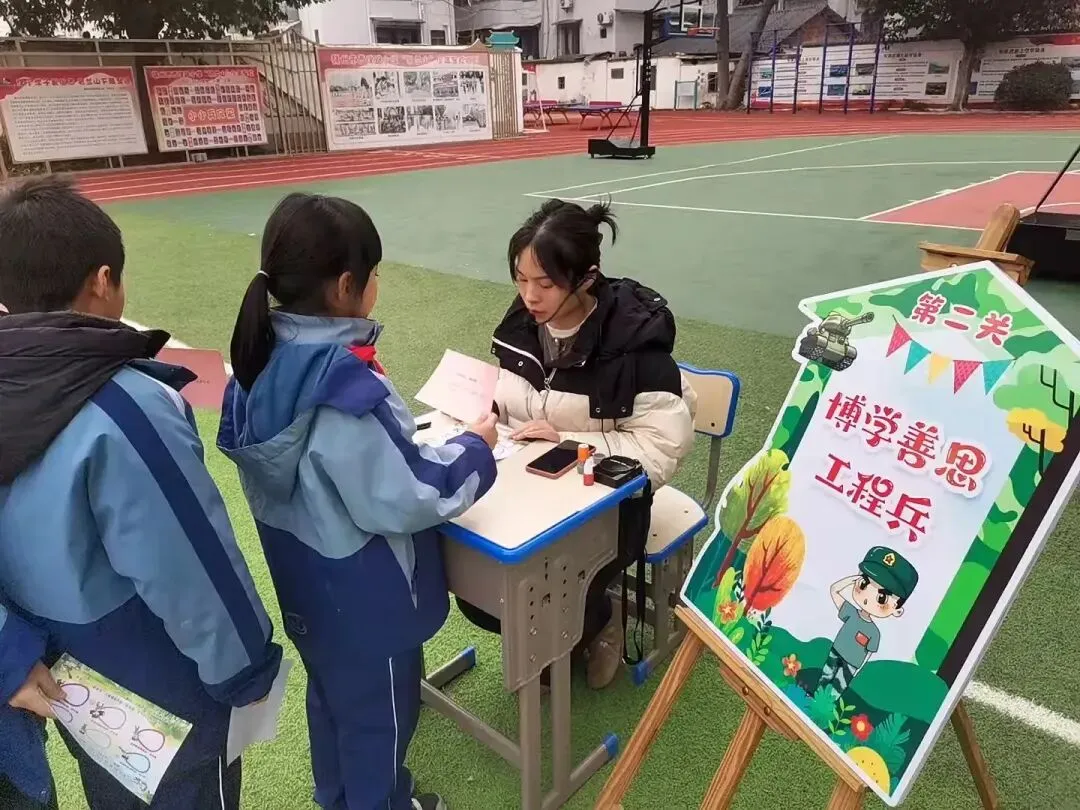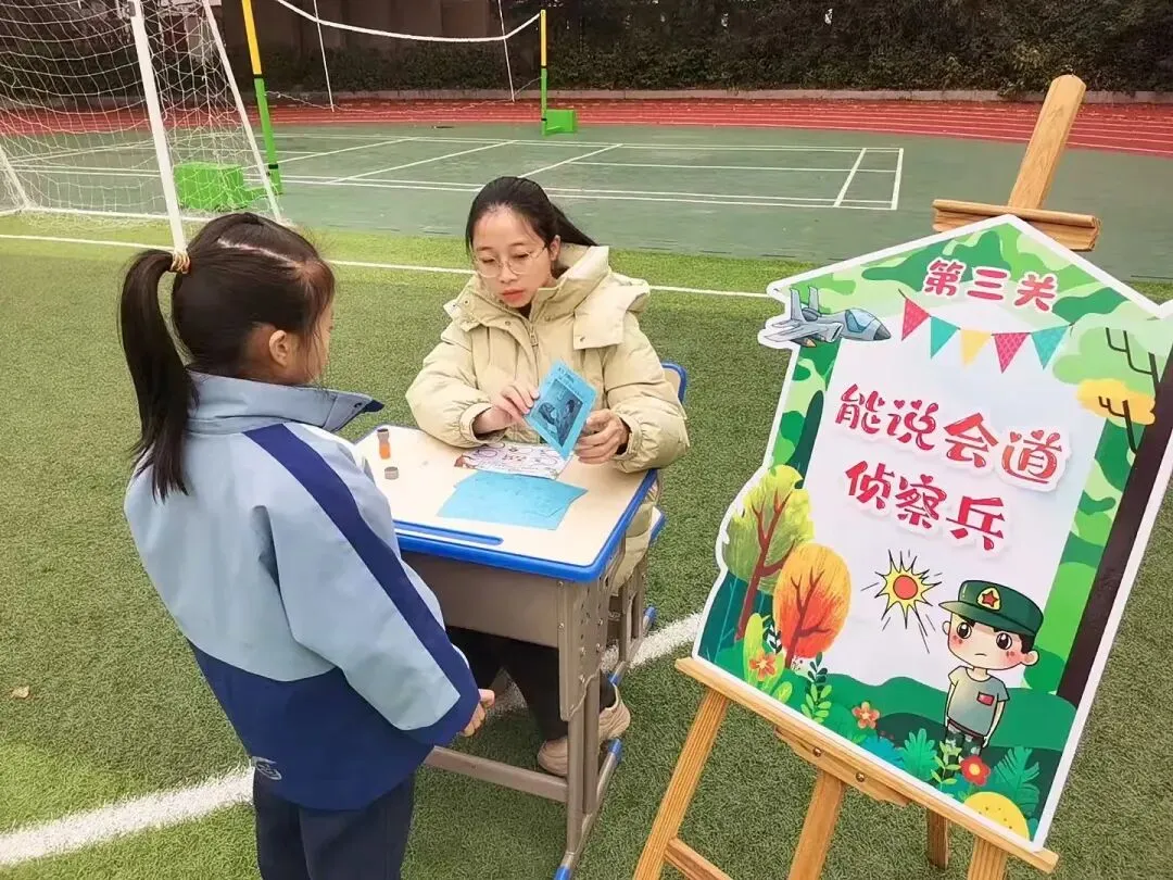 语文闯关测评寓教于乐、寓评于境,有效检验学生语言知识的迁移运用水平,提升其学习自信心与实践能力。耳聪目明侦察兵们破译字词拼音密码,在趣味任务中巩固字词基础;博学善思工程兵声情并茂地背诵经典篇章;能言善辩宣传兵在模拟情境中讲述故事。小小兵们不仅扎实展现了认读、积累、表达等语文核心能力,更锻炼了临场应变与逻辑思维。