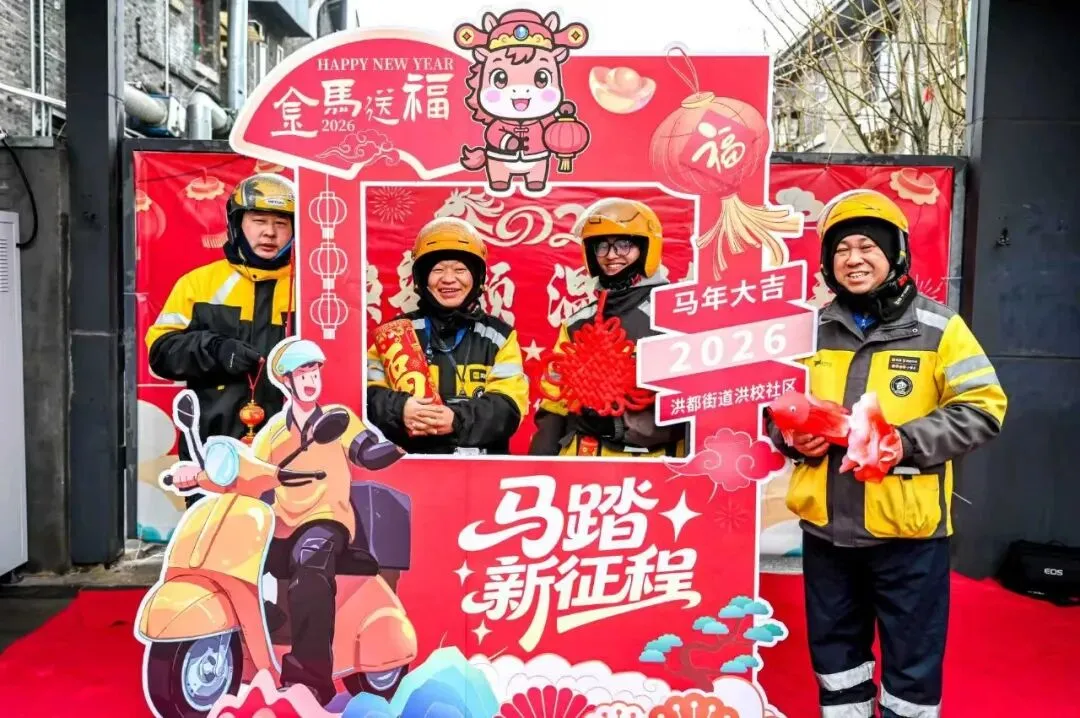 南昌市青云谱区洪校社区举办“光影定格温暖”活动,为外卖骑手留存新年记忆。