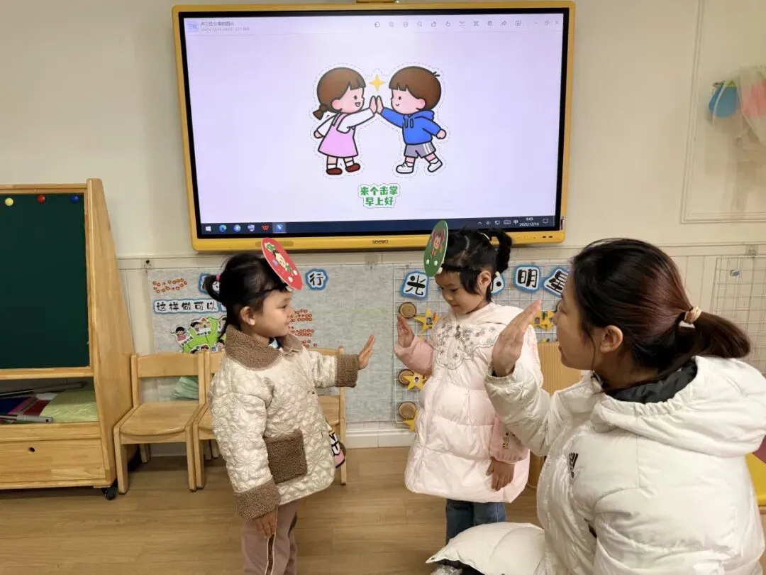 聚焦交往能力与规则意识培养,让幼儿学习“请”“谢谢”“对不起”等礼貌用语并体验其带来的友好氛围;尝试与同伴交换玩具;建立集体活动规则意识,学会用语言向老师表达自身需求;还化身“礼仪小天使”站在幼儿园门口,用甜甜的问候传递礼貌。