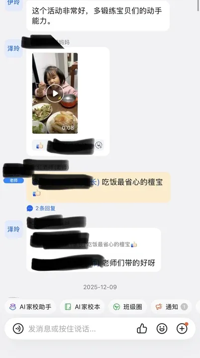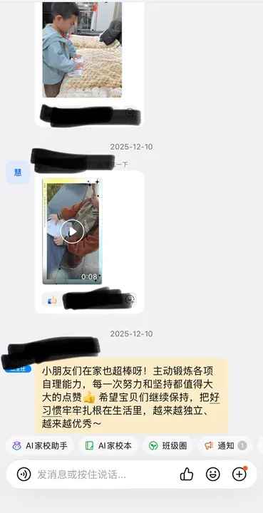 通过提前发布穿脱衣物、整理玩具、自主用餐的挑战任务清单,以此培养幼儿的生活自理能力。通过分享优秀视频,搭建家园交流的平台,让家长互相借鉴育儿经验,形成幼小衔接的家园共育合力。