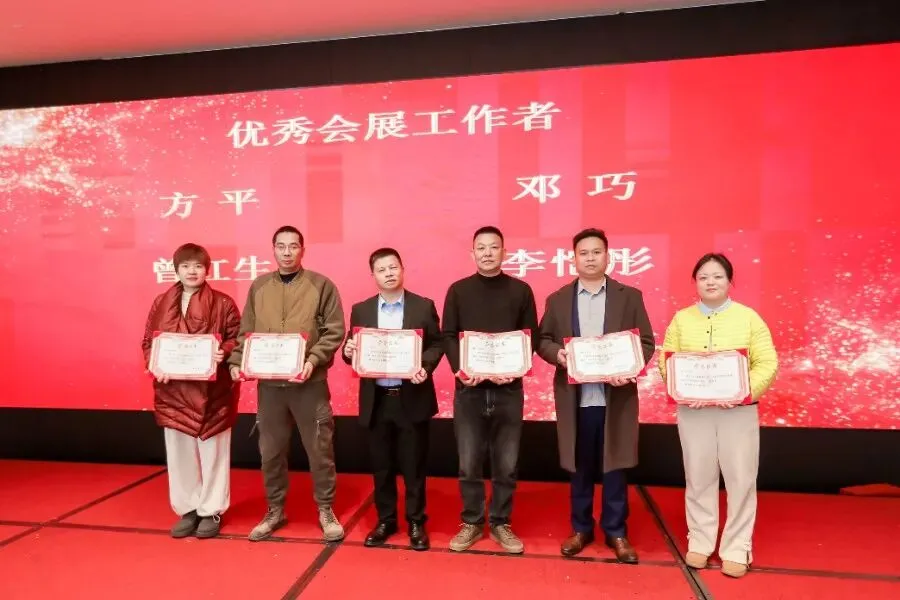年会现场举行表彰仪式,先后颁发“会展优秀会员”“突出贡献会员”“会展创新会员”及“优秀会展工作者”奖项,表彰过去一年表现突出的会员单位与个人,获奖代表上台领奖,接受祝贺。