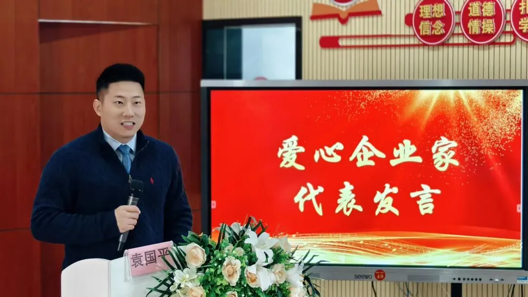 爱心企业家代表袁国平同志发言:教育是国之大计、民之大计,三尺讲台系国运,一颗丹心铸民魂。正是有了广大教师的无私奉献和辛勤工作,才为我们的社会培养了一批又一批优秀的人才,为国家的发展注入了源源不断的动力。往后将继续弘扬尊师重教的传统美德,一如既往地关心支持教育事业,为家乡教育事业健康发展做出更大的贡献!