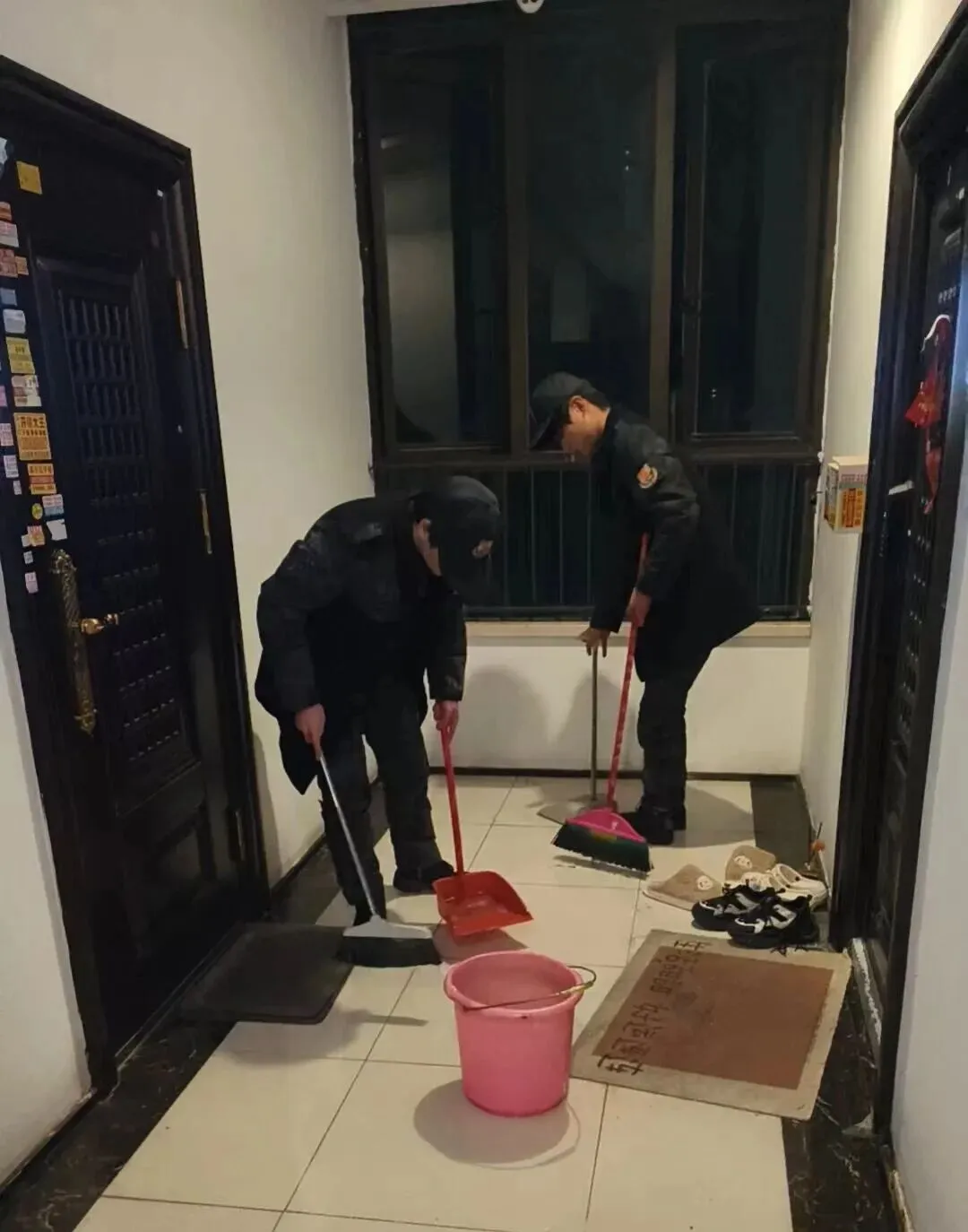 业主报事,说房门上有贴小广告的行为,管家接到报事之后找到环境主管沟通,环境主管立马组织保洁阿姨进行“铲除小广告”行动,看到业主的鞋柜倒了并扶起摆放整齐,不仅仅是拆除小广告,更是红色物业的一种态度,业主回到家后看到这一幕,立马预存了物业费,这是互相的,我们用暖心服务换取业主的认可!