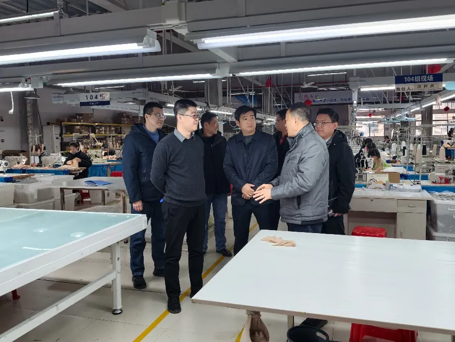 在江西速塑服饰有限公司,调研组一行深入了解企业服饰研发设计、市场拓展情况,调研组鼓励企业继续深耕细分市场,加强品牌营销,提升产品市场占有率。