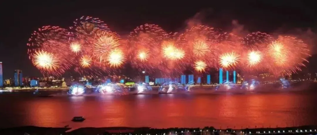 晚会构筑了“楼体”+“江舟”遥相呼应的燃放盛景,将以城市地标303双子塔的楼体焰火拉开璀璨序幕,随后,光芒将过渡至江面上列阵的九艘燃放船只,在1300米宽的江天之间绽放。