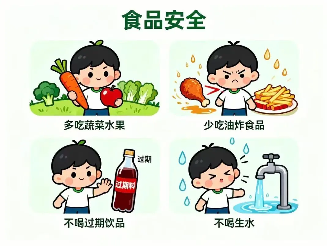 2.注意饮食卫生安全,督促孩子勤洗手,定时进餐,不暴饮暴食,防止病从口入。