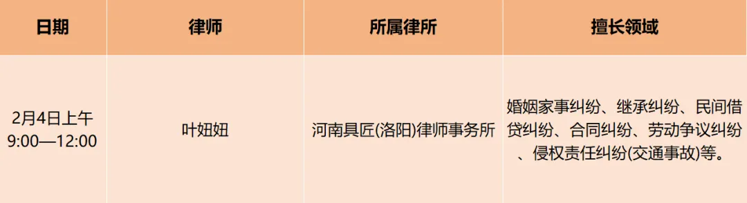 南昌路街道公共法律服务工作站下周律师值班安排(2月4日)