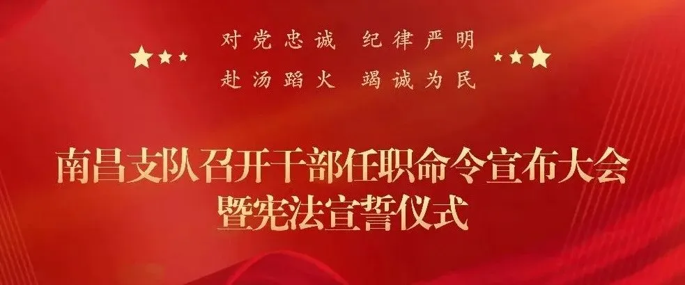 1月29日上午,南昌支队隆重举行干部任职命令宣布大会暨宪法宣誓仪式,政治委员汪勇监誓并讲话,支队长赵伟领誓,支队在家全体班子成员、支队全体干部参加。