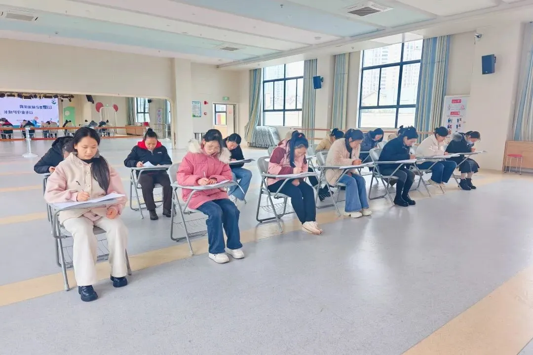 笔试涵盖《3-6岁儿童学习与发展指南》《幼儿园保育教育评估指南》保育要求,及卫生保健、疾病预防、食安急救等知识,老师们沉着应考,笔端尽显日常积淀与扎实理论功底。