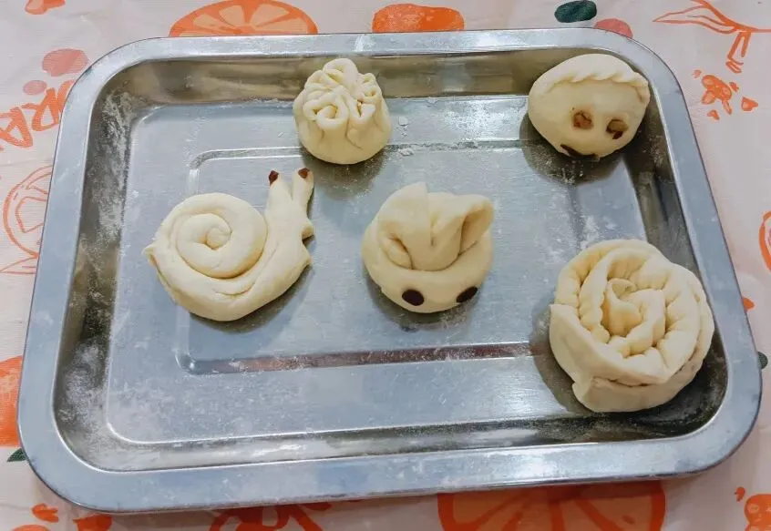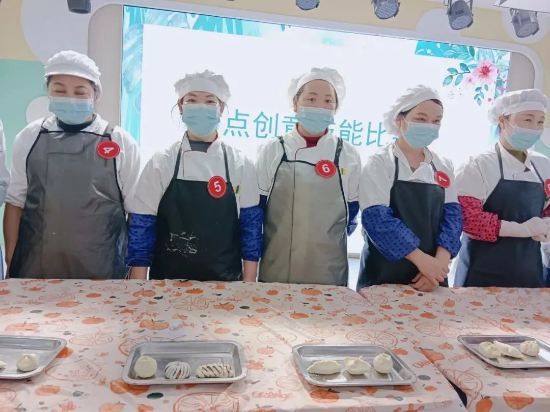 保育、后勤人员巧手匠心,揉捏擀技法娴熟,普通面团变身萌趣果蔬、灵动小动物,造型精巧,方寸面点间,皆是对幼儿的呵护与深爱。