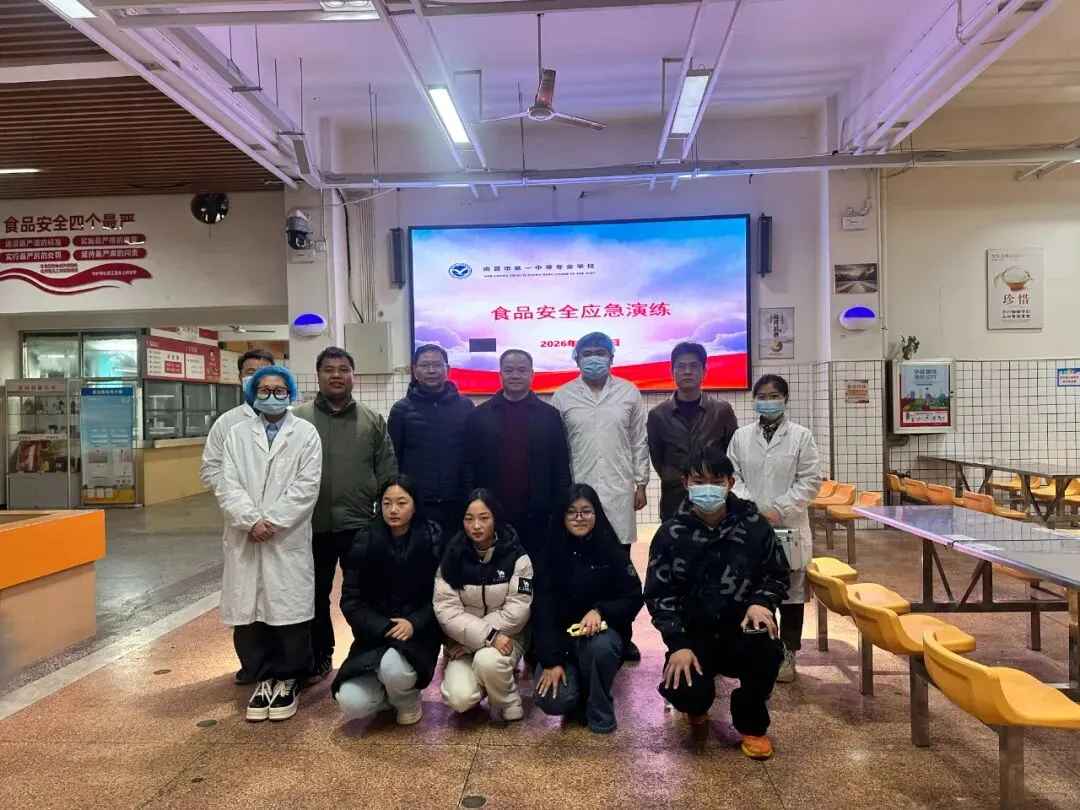 2026年1月29日下午,南昌一专在学校食堂开展食品安全应急演练。演练模拟学生餐后出现疑似食物中毒症状,学校迅速启动应急预案,各部门联动处置:校医赶赴现场初诊留样,工作人员封存涉事食品及食材,相关负责人协调送医、对接家长、上报监管部门并管控舆情,全程流程规范、响应高效。