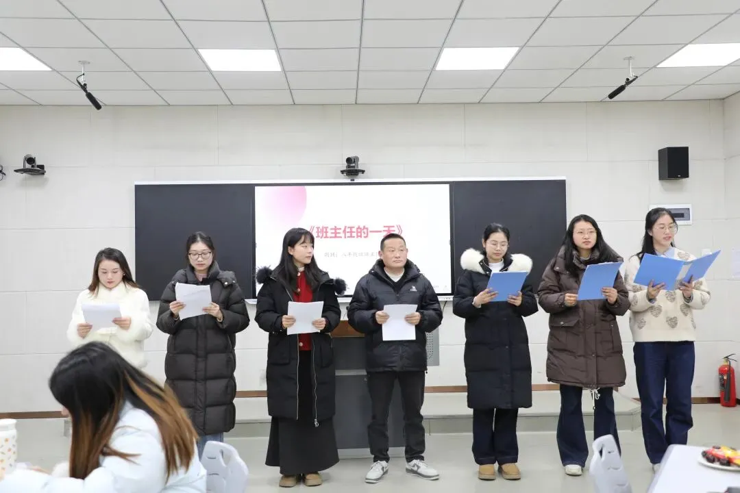 八年级班主任团队以改编版《班主任的一天》集体朗诵,生动再现了班主任工作的琐碎与温暖,引发全场共鸣。