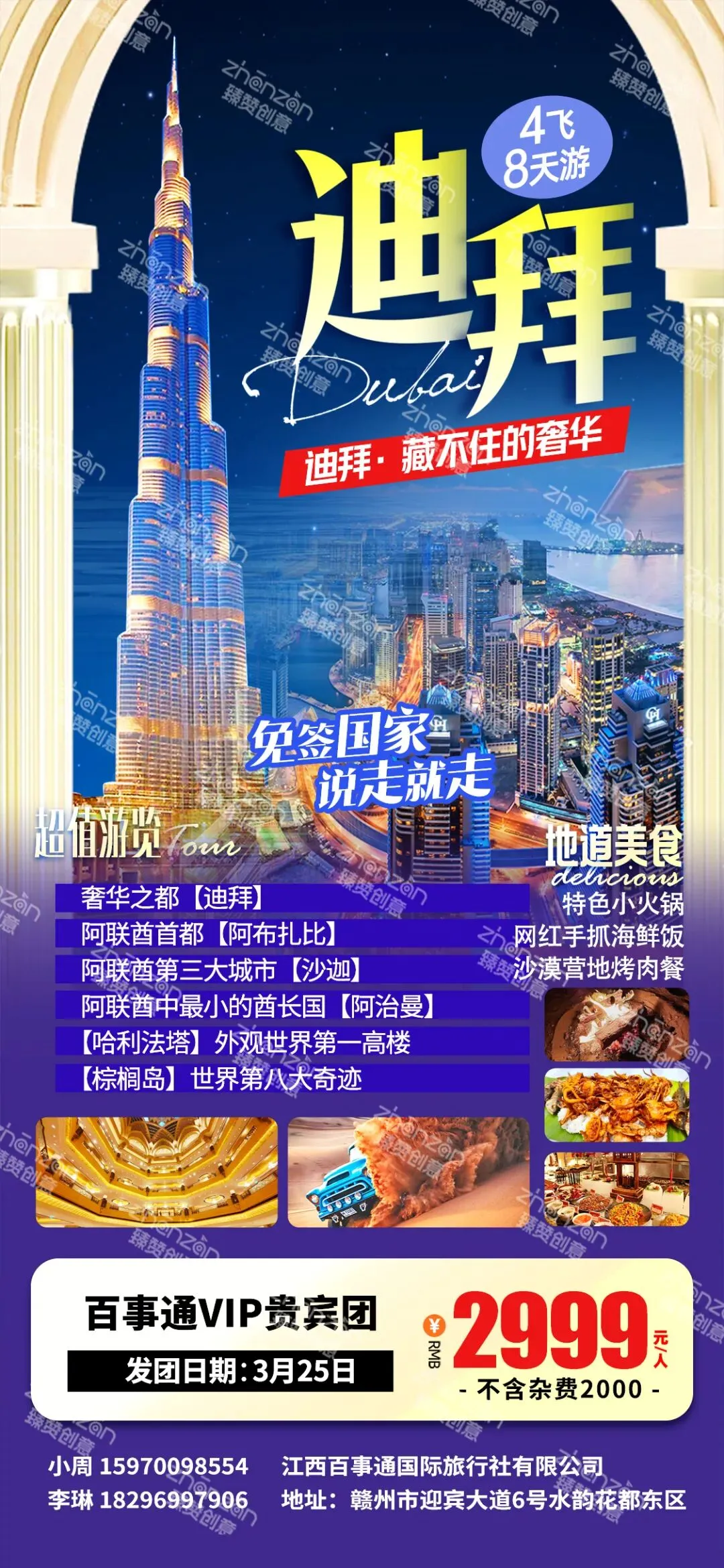 【交通工具】赣州-迪拜往返飞机(四飞),当地空调旅游车