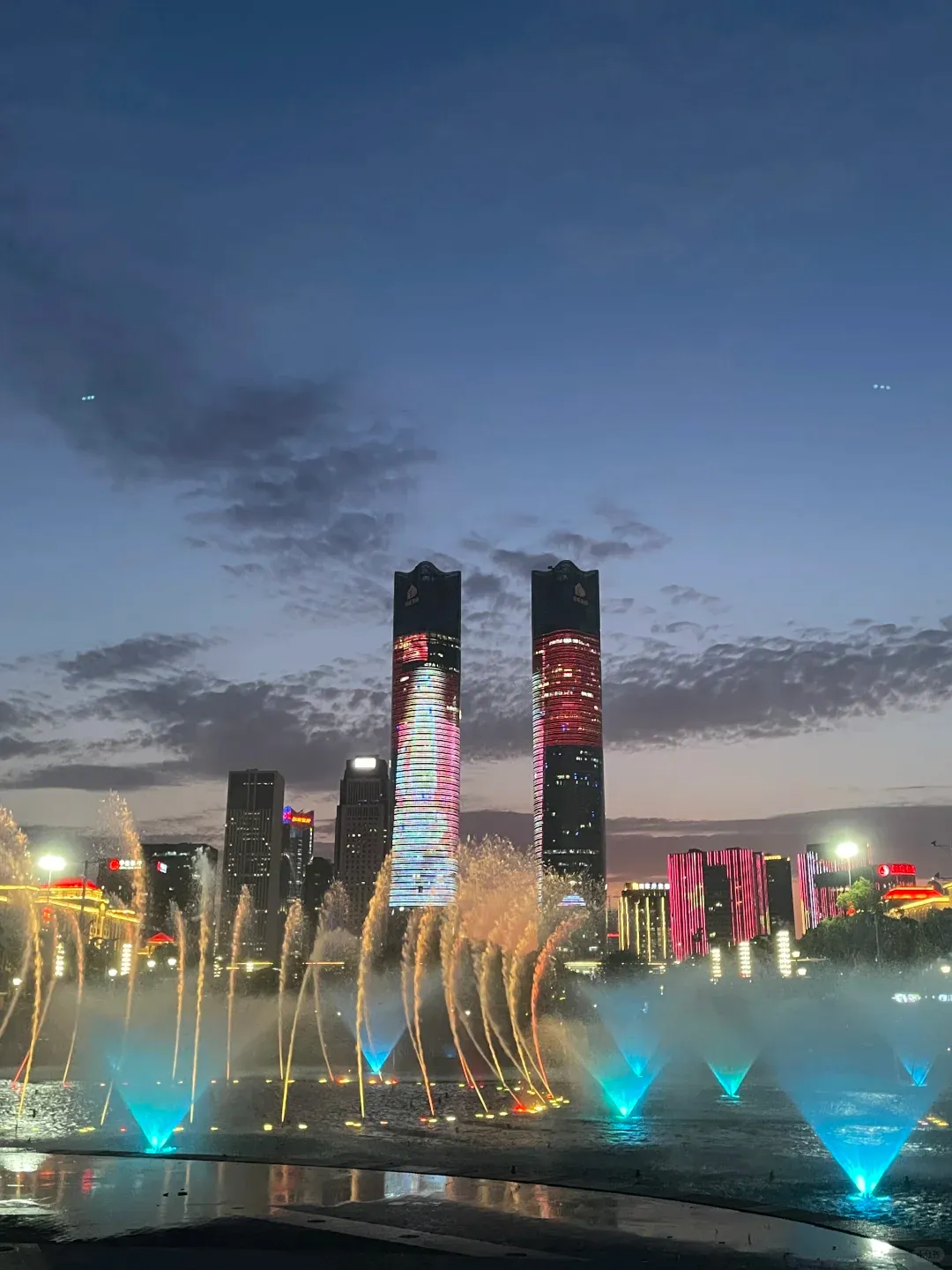绿地双子塔在这儿杵着,灯光一换花样,谁都忍不住举手机。