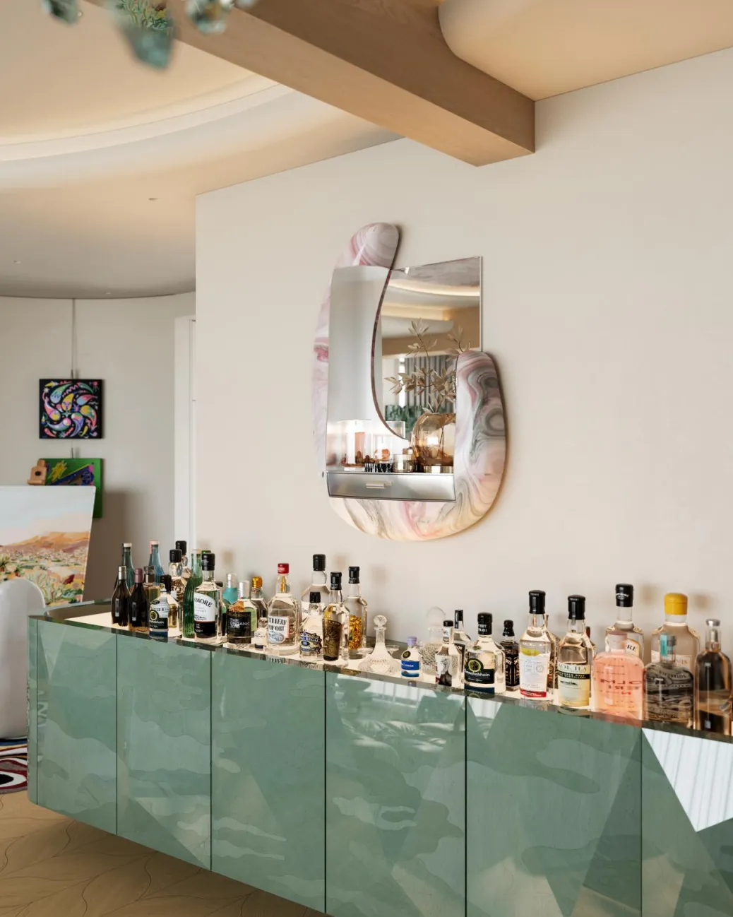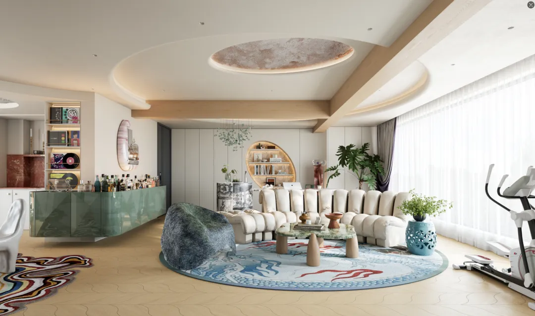 调酒区:客厅的另一侧是女孩的调酒区域。一个精致的酒柜里摆满了各种美酒,旁边的吧台上放着调酒器和酒杯。女孩可以在这里为自己调上一杯美酒,放松身心,享受独处的时光。调酒不仅是女孩的爱好,更是她与朋友交流的方式。每当有朋友来访,女孩都会为他们调上一杯特制的鸡尾酒,分享生活中的快乐。