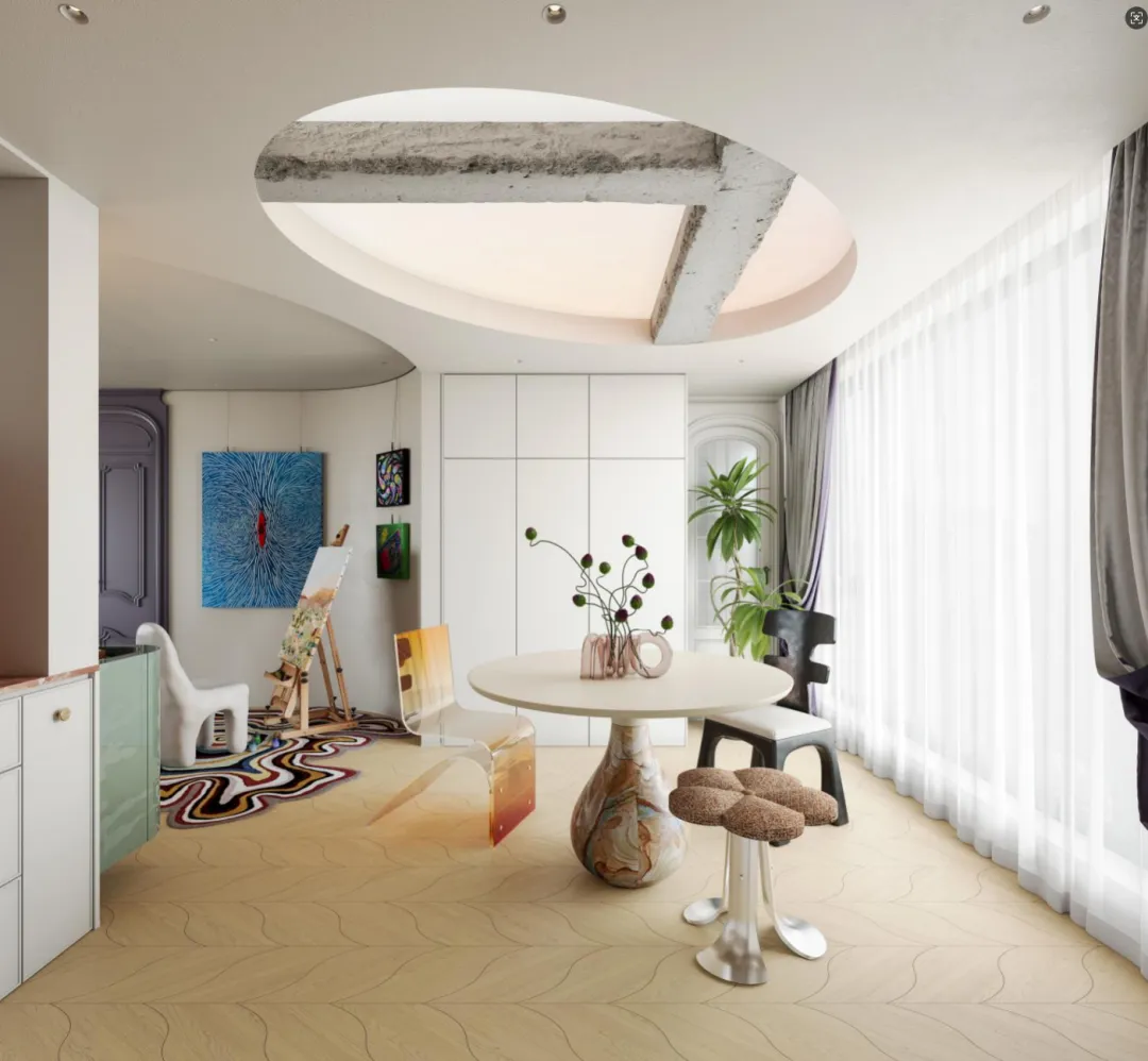 色彩是空间设计中最具表现力的元素之一,它能够直接影响人们的情绪和感受。在女孩的100㎡空间中,色彩的碰撞是一大亮点。本案大胆地运用了多种鲜艳的色彩,如红色、绿色、蓝色等,与空间中的中性色调形成鲜明对比,营造出一种充满活力和激情的氛围。女孩的100㎡空间,不仅仅是一个居住的地方,更是她实现梦想和追求自由的舞台。在这里,她用色彩的碰撞和软装的融合,打造出一个充满浪漫与自由的世界。这个空间的设计意义,不仅仅在于满足女孩的生活需求,更在于展现出一种不被定义的浪漫生活方式。