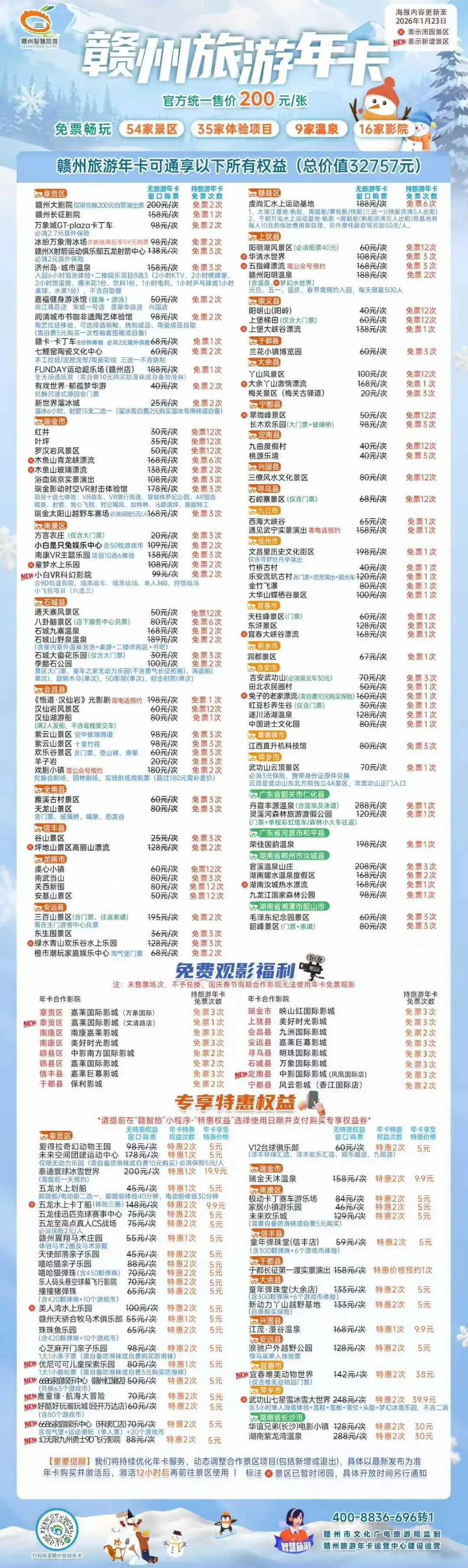 请随时关注公众号以及年卡会员群内消息,建议出行前拨打景区/项目电话咨询是否营业。如使用年卡过程中遇到任何问题,请联系赣州旅游年卡客服咨询热线:400-8836-696转1,客服热线服务时间为8:30-21:00。
