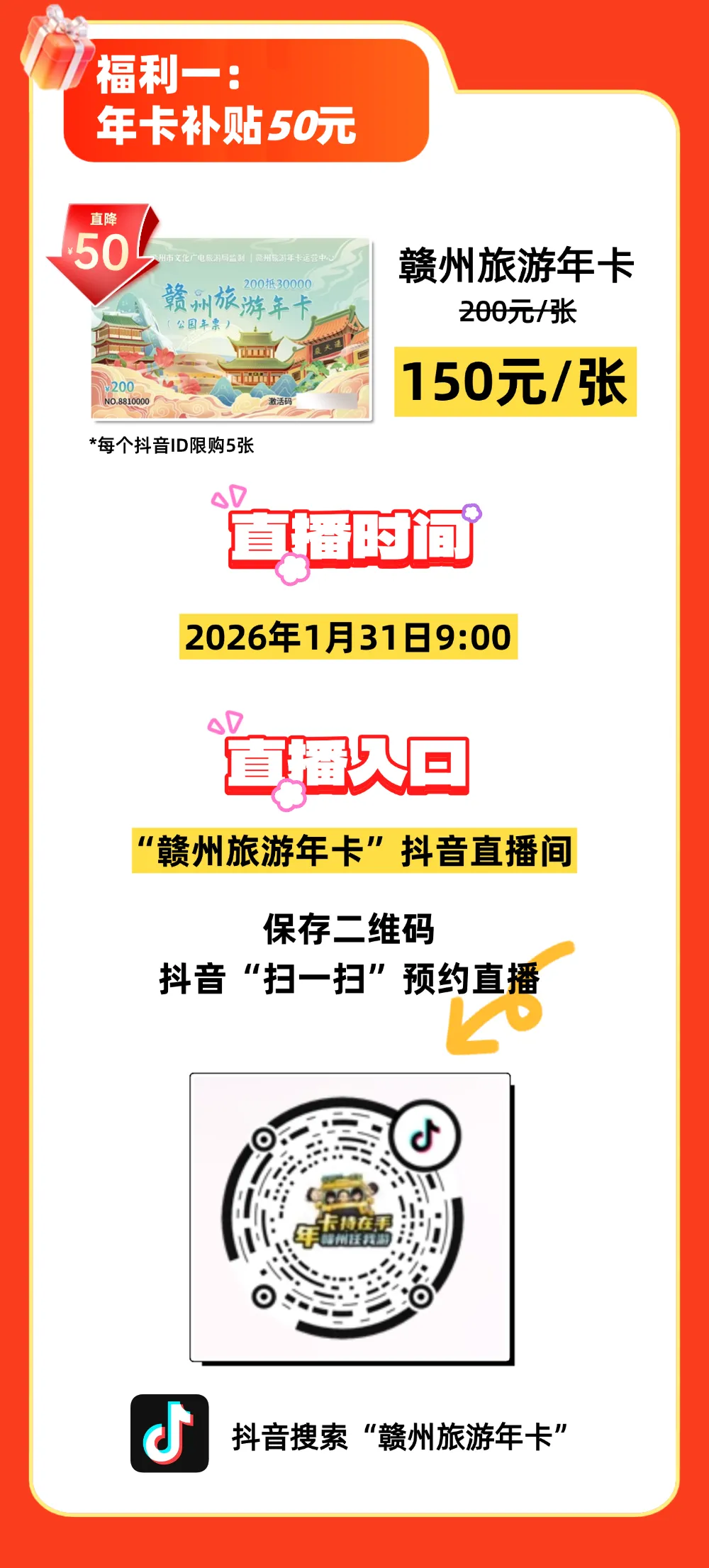 【正在直播】赣州旅游年卡*赣州巨亿万达,年卡50元补贴,大牌名品直降千元、10大专属权益福利拉满~