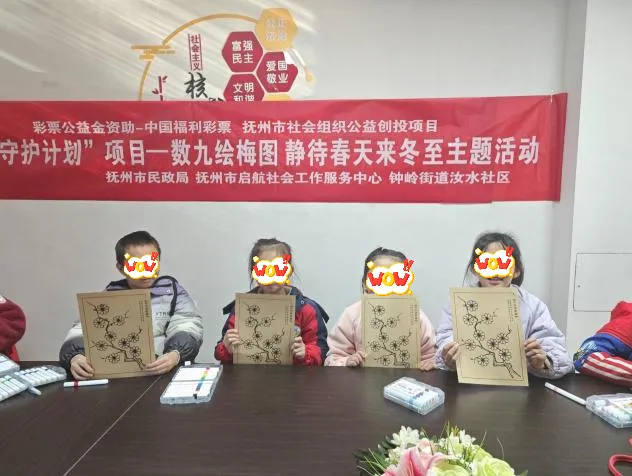为弘扬中华优秀传统文化,丰富社区儿童冬日课余生活,培养其动手能力与坚持自律的习惯,于2025年12月20日下午在高新区钟岭街道汝水社区文昌中心小区红色物业活动中心,举办了“数九绘梅图 静待春天来”冬至主题文化活动。共计26名社区儿童全程参与,由2名项目社工及4名志愿者共同组织开展。