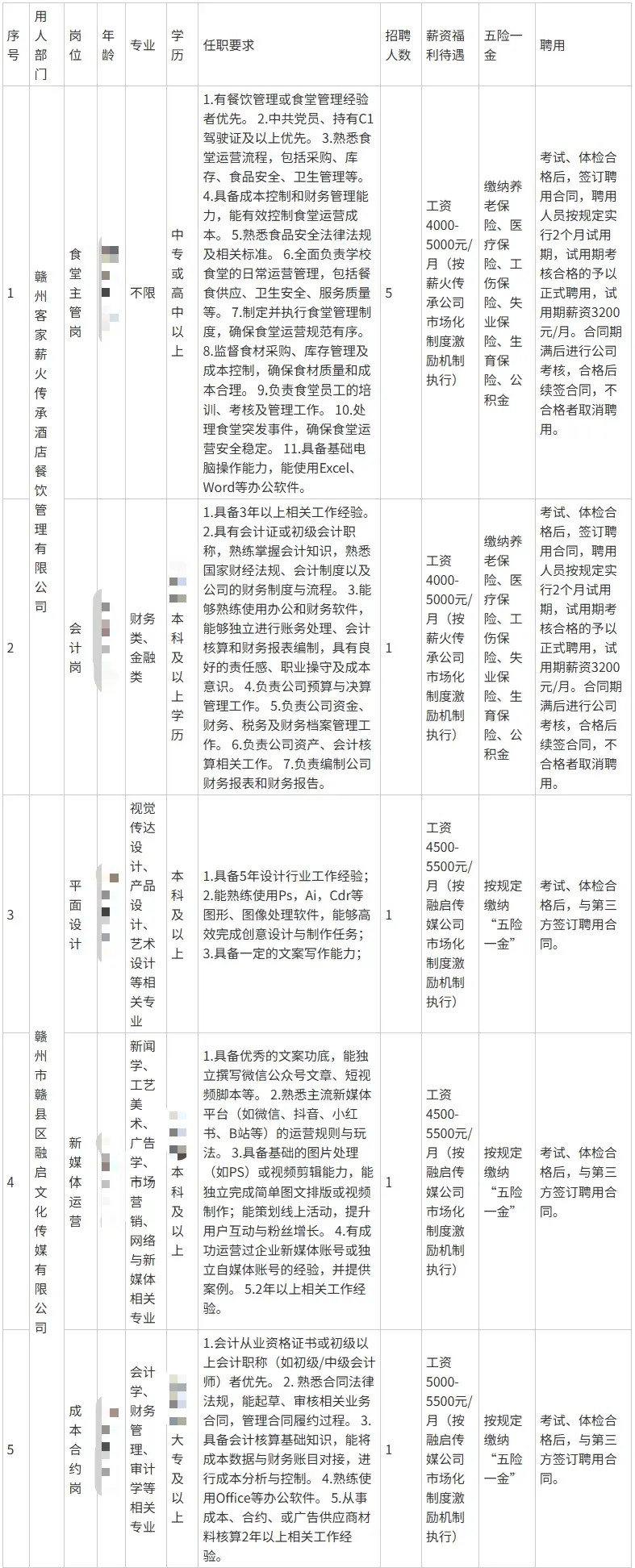 因业务发展需要,赣州市赣县区文化旅游投资集团有限公司下属子公司现面向社会公开招聘派遣制员工9名,现将有关事项公告如下: