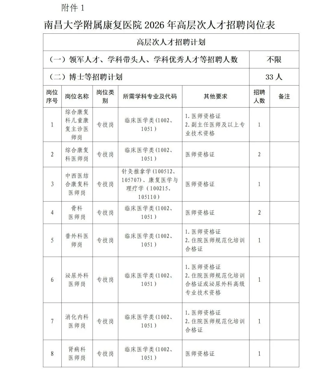 进入体检人选名单等后续所有相关事宜将在南昌大学人才招聘网(https://rczp.ncu.edu.cn/)和南昌大学附属康复医院官网(https://www.cdsfy.com/)招聘栏公布,接受社会监督。