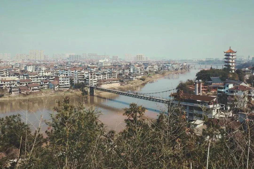 「唐宋八大家」之一的曾巩就是南丰人,其祠建于读书岩,岩立旴水南壁,对望之北岸,枕河而绕现古城全貌。串盱水通南北有飞梁,正是取代千年浮桥的上世纪悬索桥。