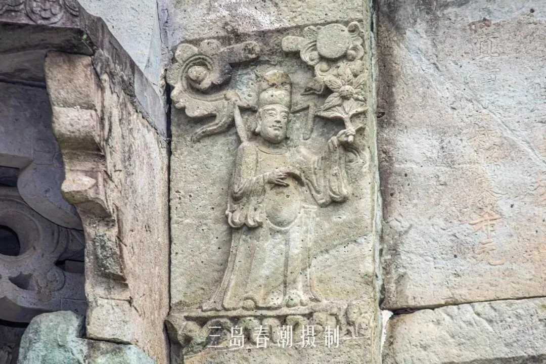 行走城中,随便进入一处巷道,几乎都是成列的精致门楼,红色石雕重叠着泛黑木刻,大户门楼套着别院小园,抬首而观的八字墙随处可见,缀满雕饰的门框亦不足为奇。民间部分之外,南丰标志着县治所在的制式建筑也殊为出色,从老城墙到城隍庙,既展现了其古典秩序又富有趣味。