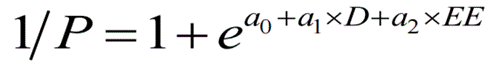 通过对当地水文地质条件的分析,研究确定了最适合宁都县的衰减系数k=0.8。随后,研究团队将这组三维数据(D,EE, P)视为一个整体,利用逻辑回归进行非线性曲面拟合。拟合得到的方程是一个S型函数: