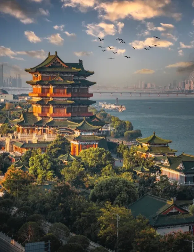 拍照建议:拍滕王阁,别光在楼底下仰拍,全是人头。去江对岸的红谷滩,或者找个高处的咖啡馆,等晚上灯亮起,那是古今对话的最好角度。光线要选蓝调时刻,天将黑未黑,楼阁金碧辉煌。